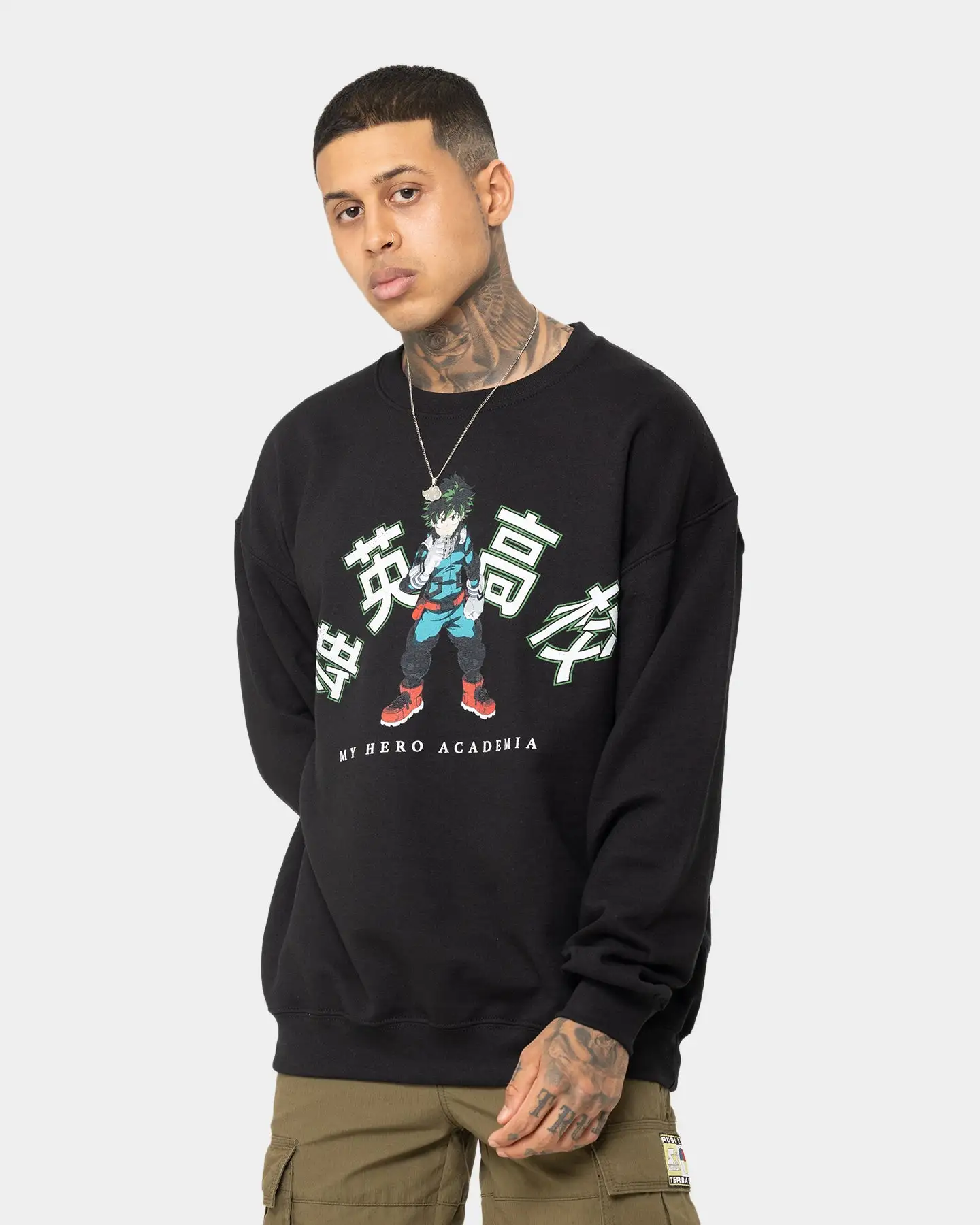 Level up to your superhero self with the Goat Crew X My Hero Academia Midoriya Crewneck! The latest GC collab features printed graphics of your favourite manga turned anime and all their characters, with dropped shoulders for a touch of a classic streetwear vibe. A brushed fleece interior and ribbed trims keep you warm and make this your go-to crew. Cop yours today!