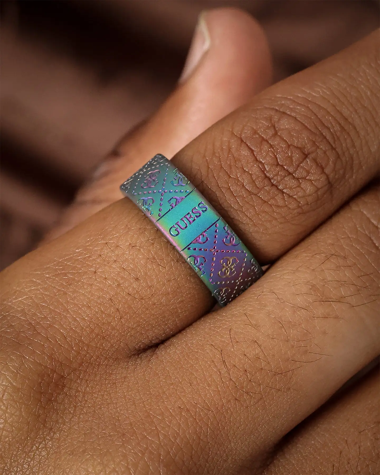 Built to buss up your fit the 8MM 4G Pattern Ring features a matt, iridescent finish and iconic Guess engravings. With an 8mm thickness, this ring is sure to stand out and its unique look will draw everyone’s attention. Cop this ring to inject a little luxury into your look.
