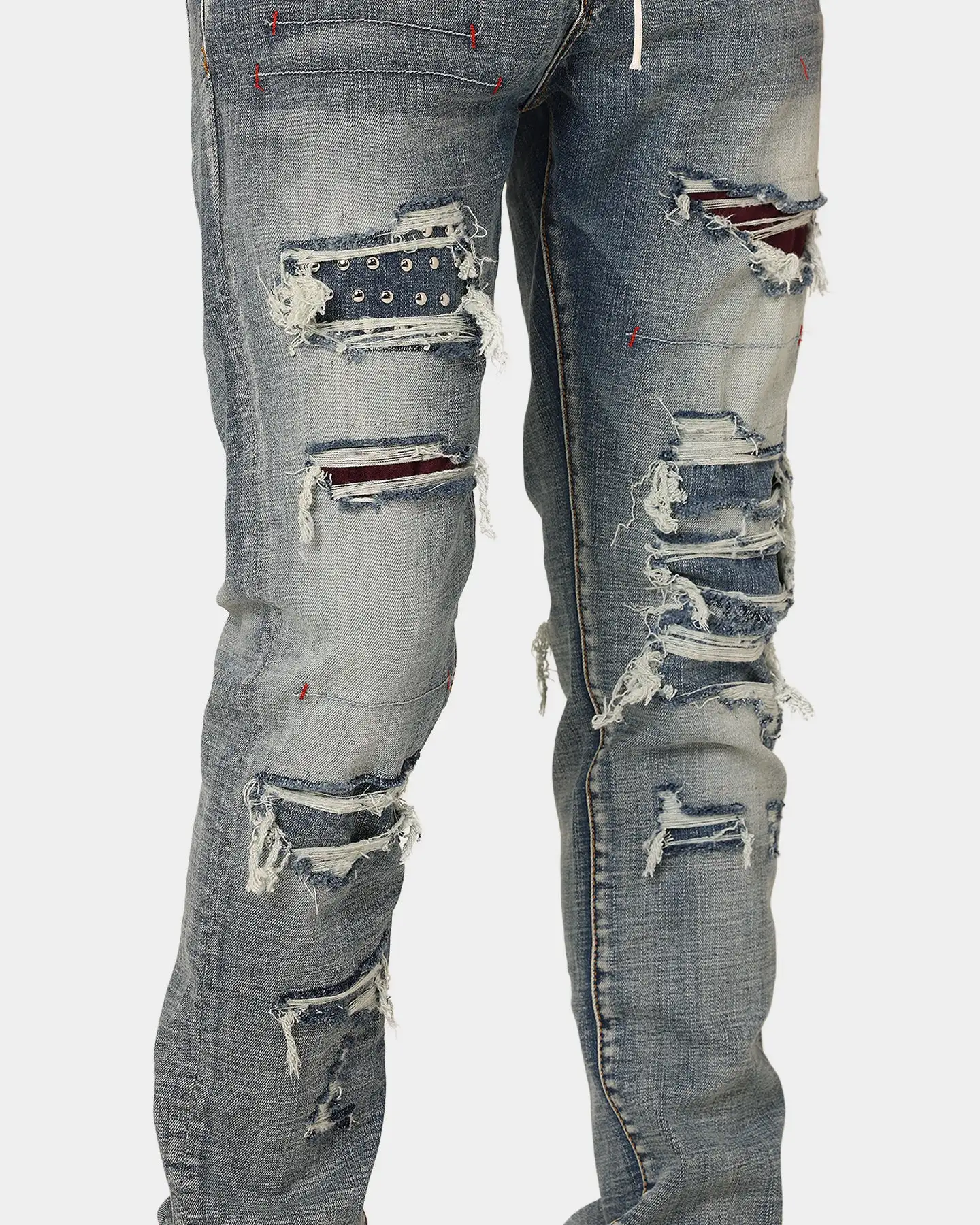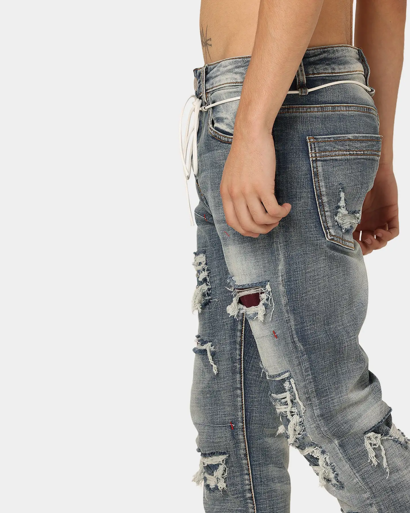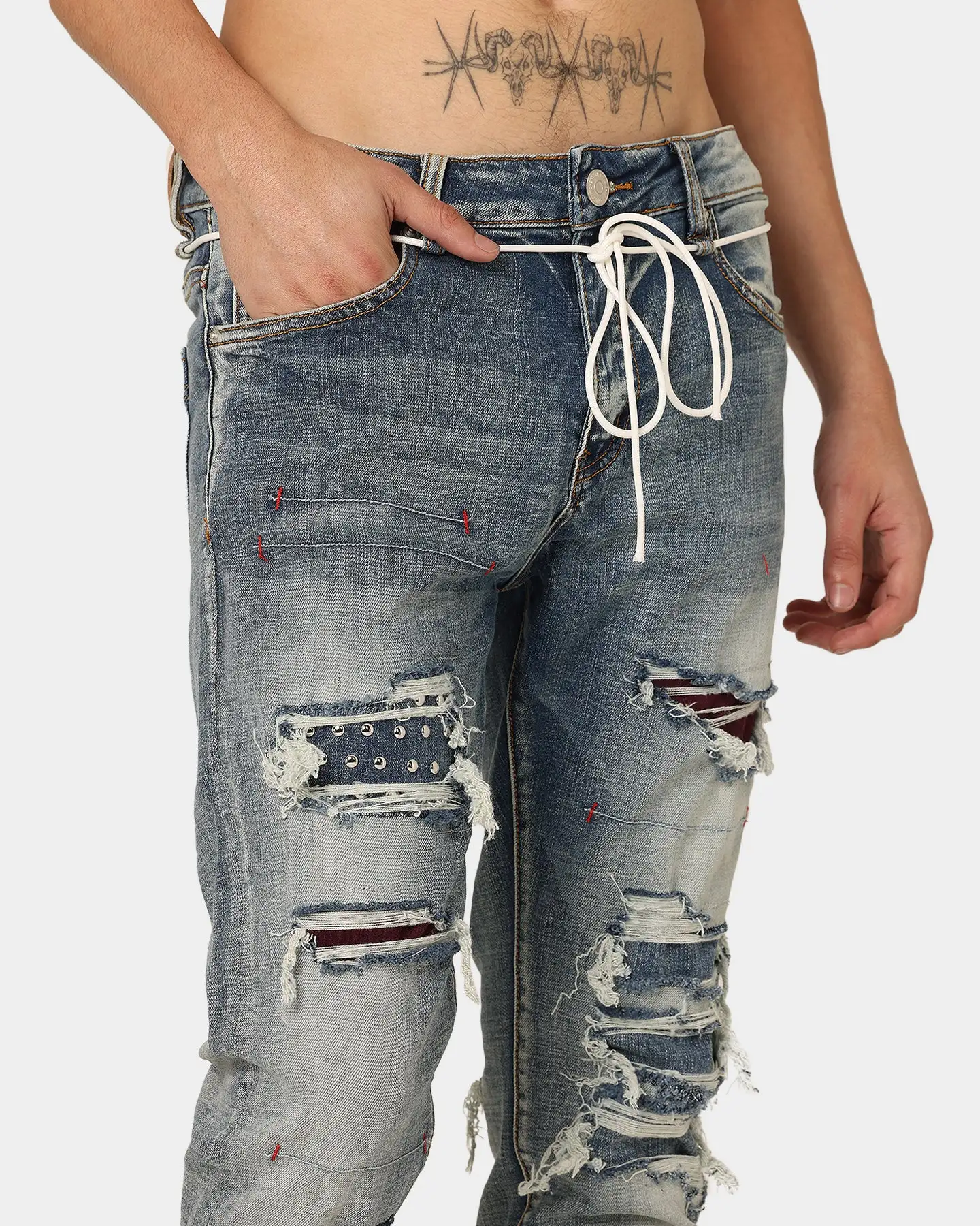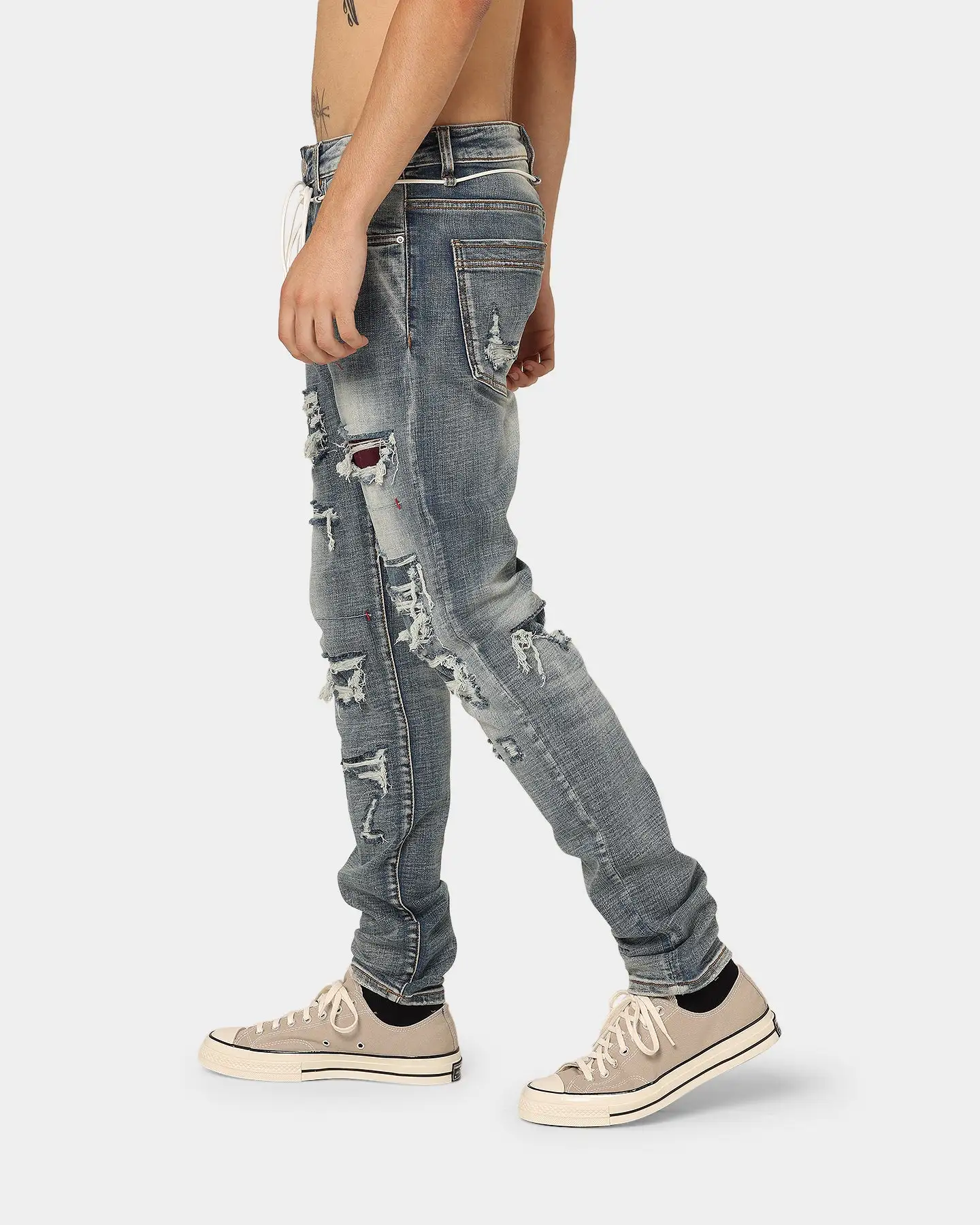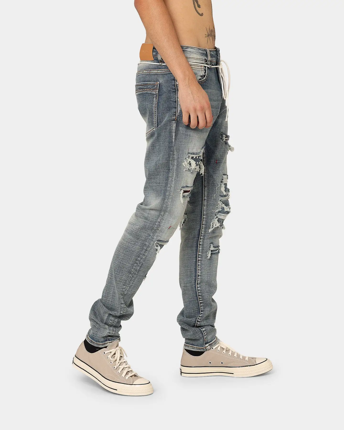 Lifted Anchors is back with their iconic designs and the Malibu Patch Denim Jeans are an ode to the daredevils and trendsetters featuring a variety of rips and blowouts uniquely repaired with violet velvet, reused denim, and silver studded underlays. These jeans also show custom stitchwork throughout, helping to create the perfect worn-in look. Topped with rinsed and acid-wash denim and designed for long-lasting comfort, these jeans were only released in limited quantities so get in quick to cop one for yourself.