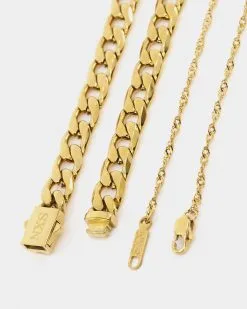 A match made for you, the Diamond Cut Double Chains feature two stunning chains. The larger diamond cut curb chain finishes with a jump ring clasp to lock it in place, while the smaller twist chain has a lobster clasp. Tarnish free and waterproof for lasting wear, secure yours today.