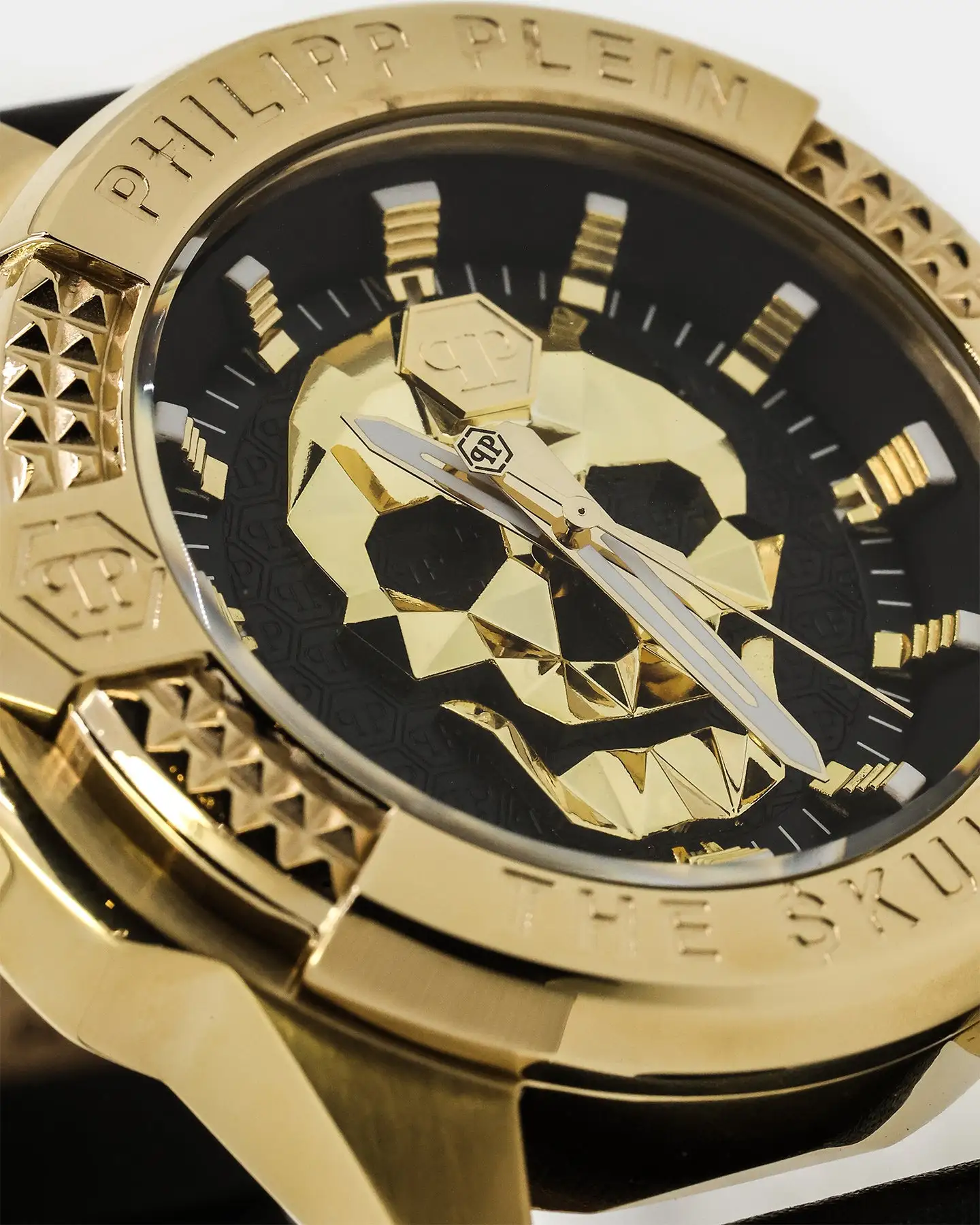 The $kull is Philipp Plein’s most iconic symbol: representing irony, unconventionality, and rock spirit. With such a strong symbol, this watch was sure to rise to unbelievable heights. Its uniqueness comes from the 3D $kull construction on the face and the hexagon pattern on the dial.