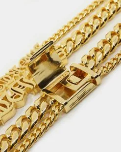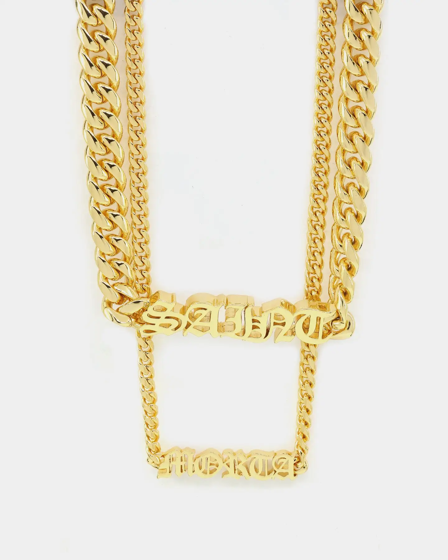 Cop The 3 Saints Chain Necklace for a baller piece of bling. This iconic Cuban chain has been doubled up and adorned with Saint Morta motifs. With its 18K gold plating, this necklace has a luxurious feel and finish. Cop yours while they last to elevate your ‘fits.