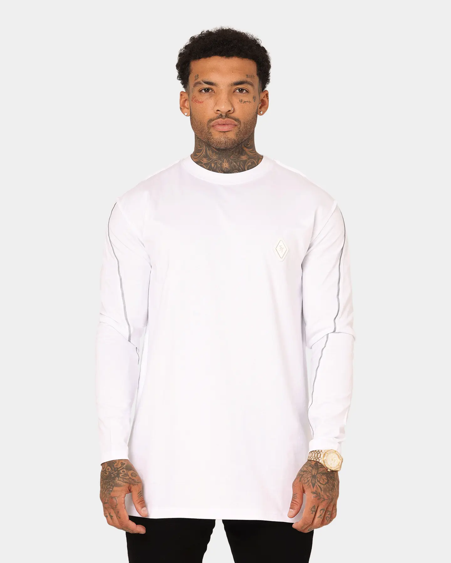Catch the light in the Polaris Long Sleeve T-Shirt from Saint Morta. Reflective piping features on the sleeves and back to add extra shine to your ‘fit. The metal logo badge pops on the chest, with exposed seams to the upper to finish this tee.