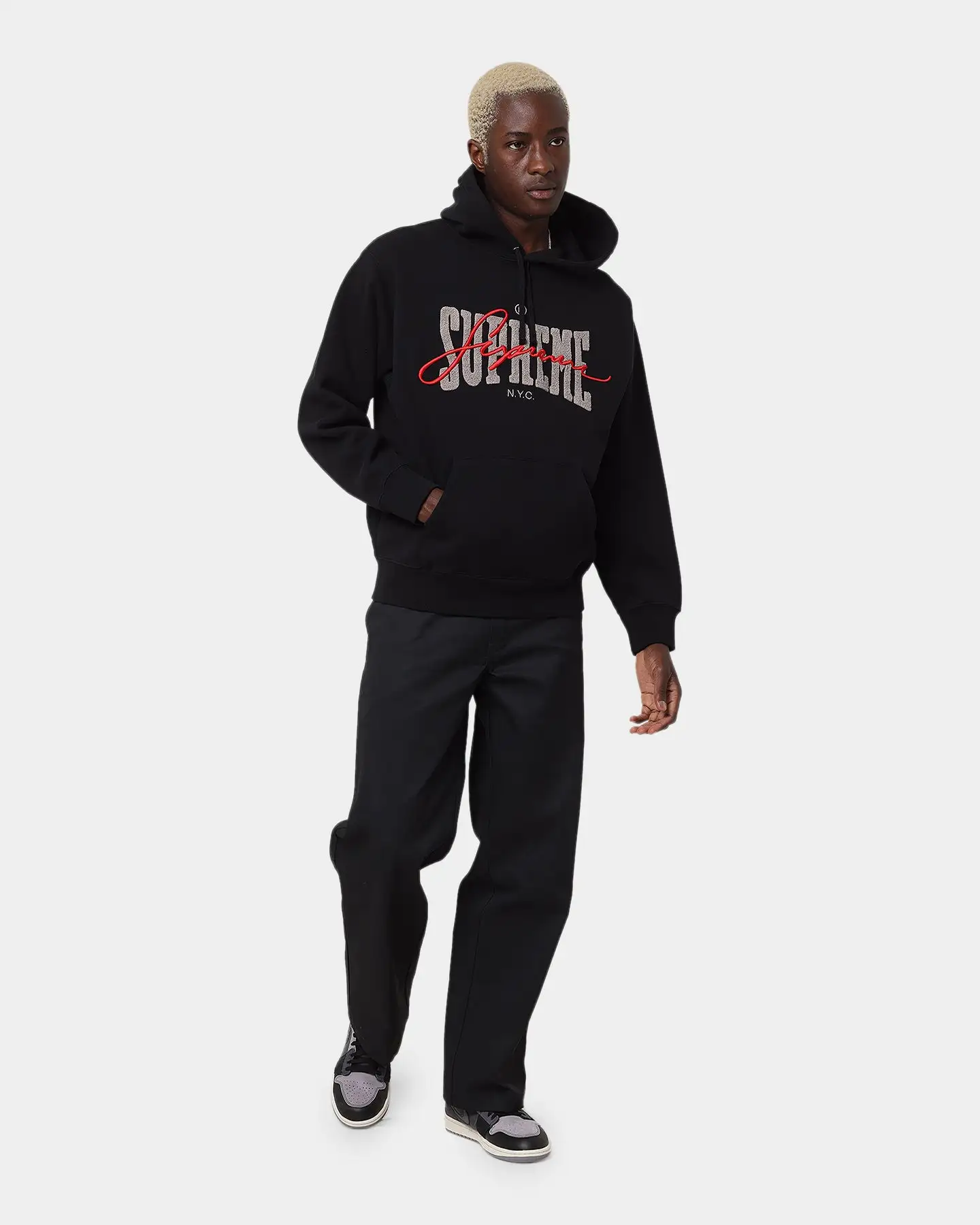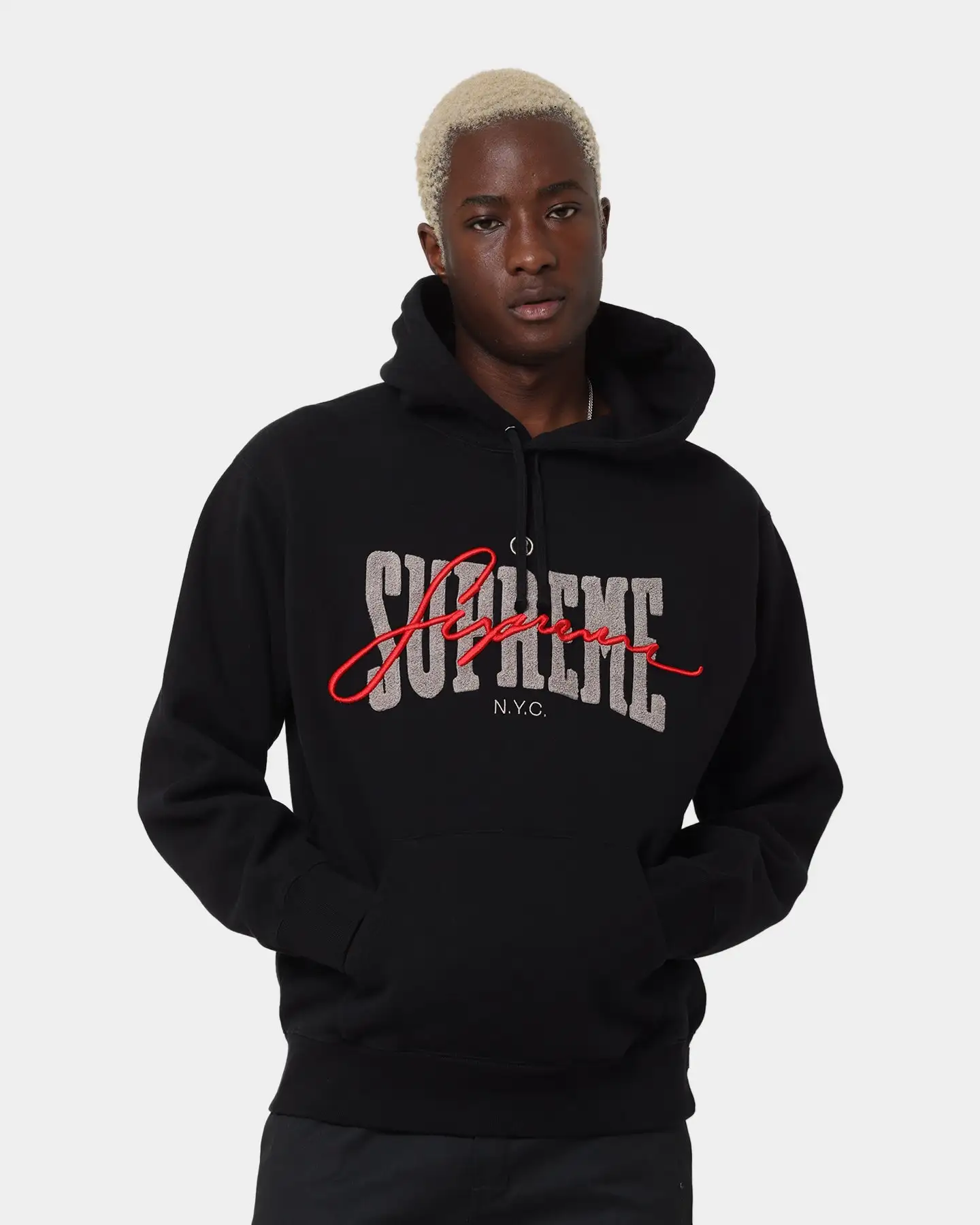 Cop a streetwear essential from a streetwear giant. It doesn’t get much better than the Supreme Embroidered Chenille Hoodie with a brushed fleece interior and ribbed cuffs to keep the warmth sealed in while you rock your fire ‘fit. A chenille embroidered brand logo marks your style and love for the brand. Cop yours today at Culture Kings.