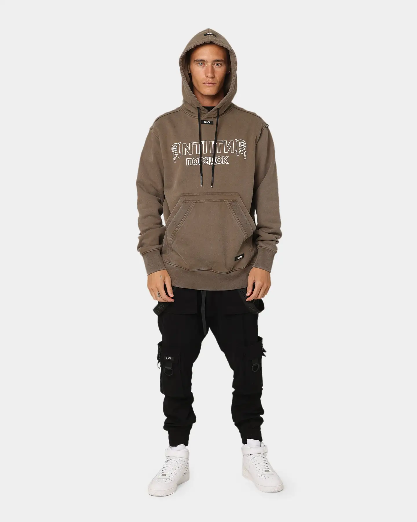 The Military Hoodie fights the chill and brings a no-nonsense vibe. Anti Order branding features to the front pairing with a double kangaroo pocket to make this thick hoodie one to keep.