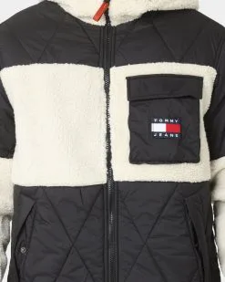 The TJM Sherpa Quilt Mix Jacket from Tommy Jeans will elevate any fit and any wardrobe. Featuring sherpa and quilted contrasting panels throughout, a fixed hood with bright orange lining, and adjustable tabs for a personalised fit and style. You can’t go wrong with this premium, stand-out style.